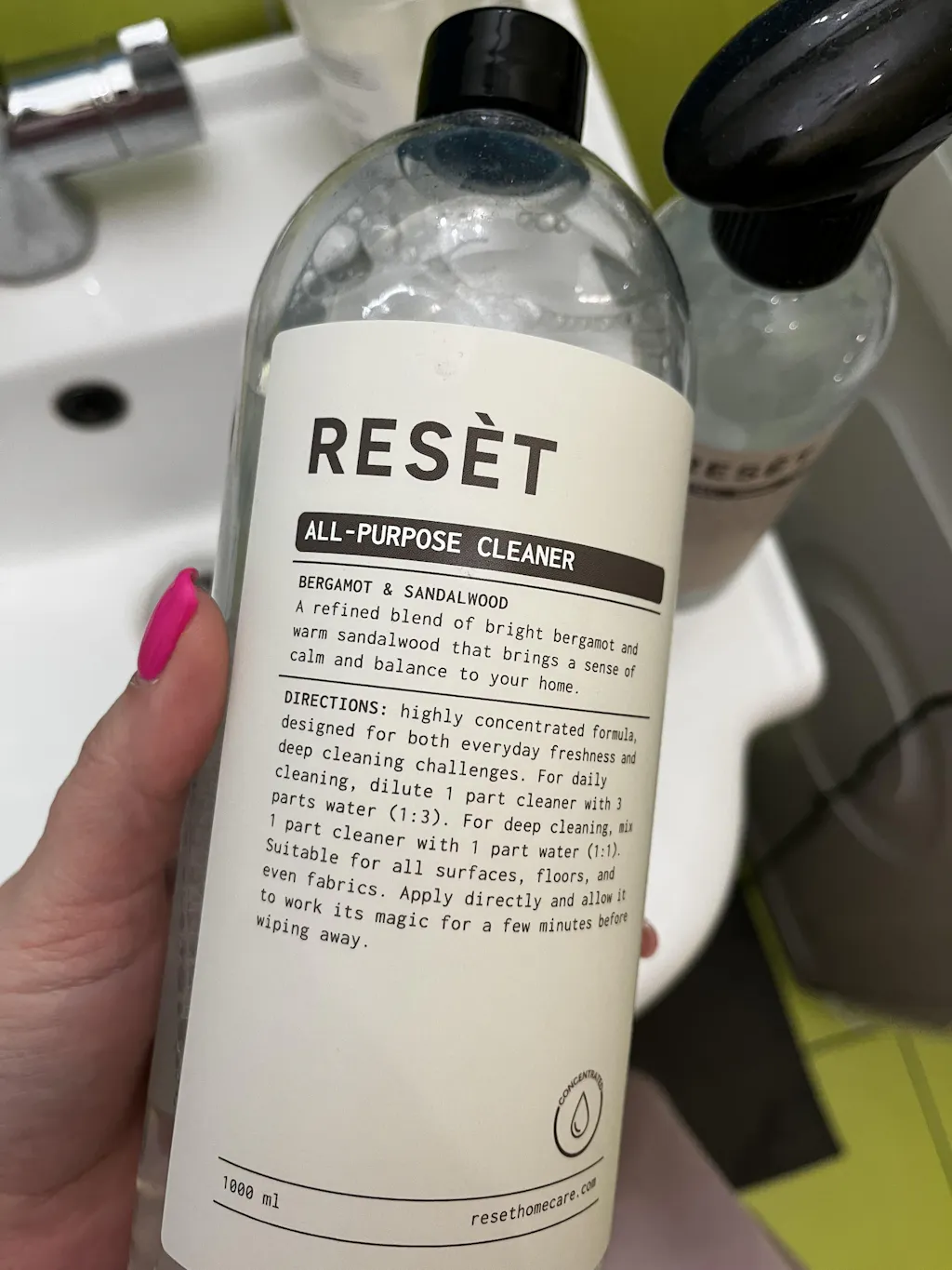 RESÈT Bergamotės ir sandalmedžio kvapo universalus valiklis - koncentruotas sprendimas kasdieniam švaros palaikymui ir rimtesniems nešvarumams. Be stiprių chemikalų, pagamintas iš natūralių ingredientų, šis valiklis efektyviai pašalina riebalus, nešvarumus ir apnašas nuo įvairių paviršių namuose. Tinka visiems kietiems paviršiams - nuo plytelių, stalviršių ir spintelių iki kriauklių, durų rankenų ir grindų. Taip pat gali būti naudojamas audiniams - kilimams, sofoms bei drabužių dėmėms prieš skalbimą. Koncentruota formulė leidžia pasirinkti praskiedimo santykį pagal poreikį - kasdieniam valymui ar sunkesniems nešvarumams. Tai padaro valiklį ne tik ekonomišku, bet ir draugišku aplinkai.